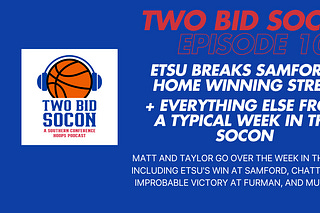 Taylor Ligon and I go over the week in the SoCon, including ETSU's win at Samford, Chattanooga's improbable victory at Furman, and much more!